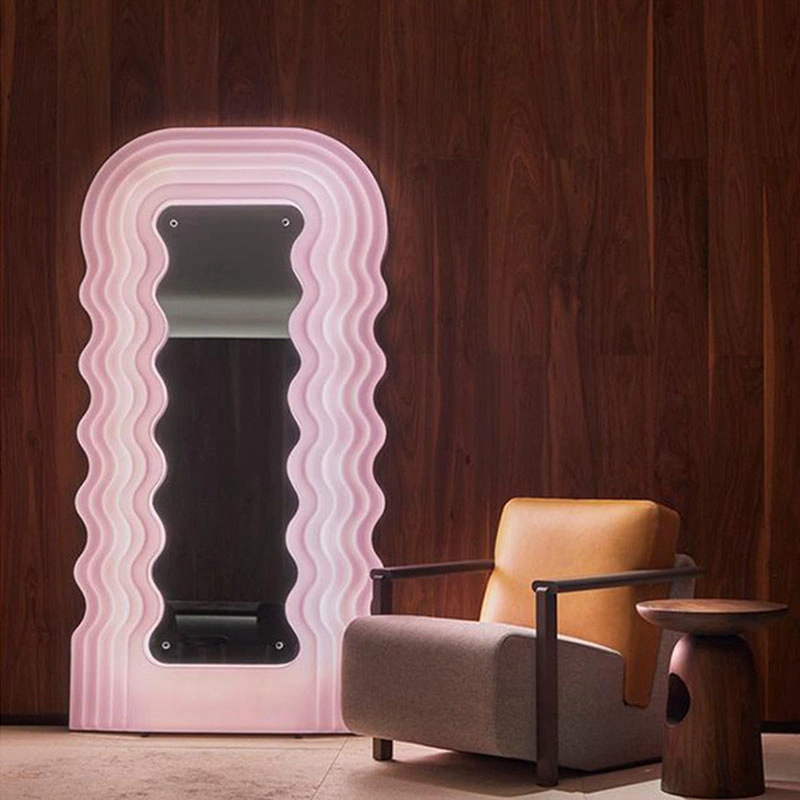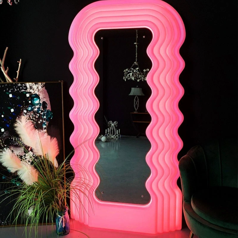 Makeup Factory Wavy Wave Floor Dressoir Volledige lengte make-upspiegel met LED-lichtroze kleur