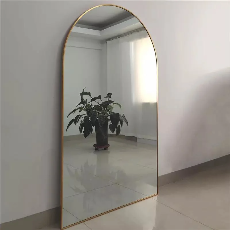 Aangepaste groothandel grote grote boog metalen omlijst goud volledige lengte lichaam lange dressing staande vloer wandspiegel